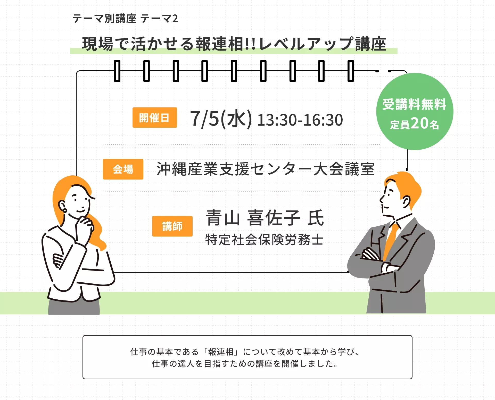 社会人ならば誰しもが耳にする報告・連絡・相談は、実務においては、やり方や手段等について伝えられることが多い中、働き続けるための重要なスキルとしての報連相に着目し、『真・報連相レベルアップ講座』を開催しました。