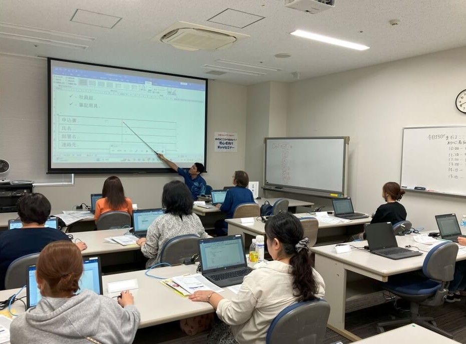 PCスキルの基本となるWord初心者の仕事をしている女性・仕事を継続したい女性を対象に、Wordの基本操作から一般的なビジネス文書の作成を学び、ハローワーク求人票にあるWordスキルA~B程度の基本スキルを身につけ、就職や就業継続、仕事に対する意識・意欲の向上、多様な働き方を支援し、スキルアップできるセミナーとなりました。