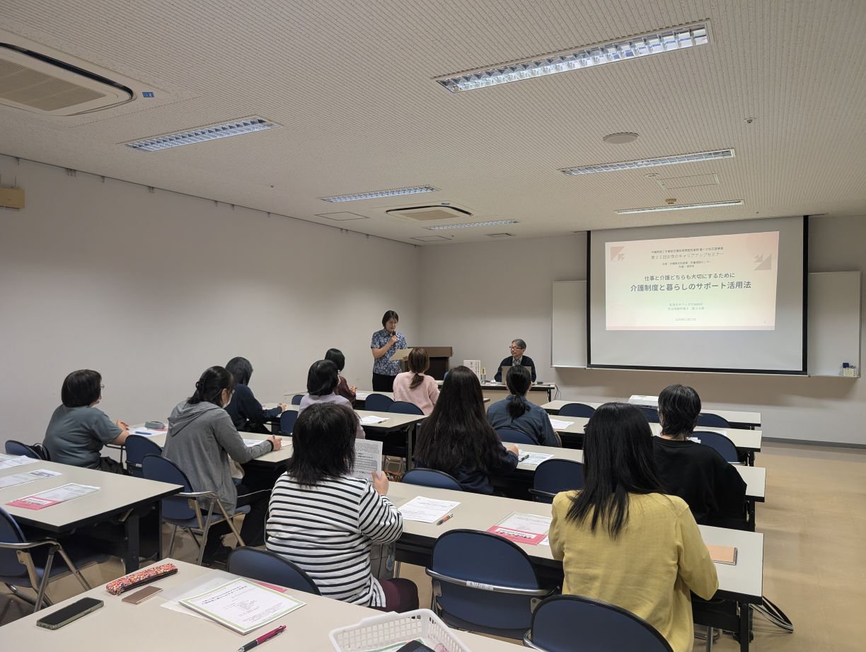仕事をしたい女性・仕事を継続したい女性を対象に、介護保険制度や介護休業制度の基礎知識から、さまざまな民間サービスとその利用方法、多様な支援制度についても紹介し、また、地域包括支援センターやケアマネへ相談する際のポイント等、事例を交えて、仕事と介護を両立するためのヒントをお伝えします。
